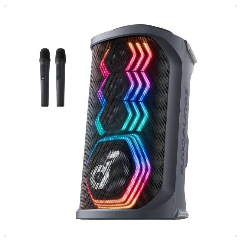 The Anker Soundcore Rave 3S is a powerful 200W AI-driven karaoke party speaker engineered to elevate any gathering, indoors or outdoors. Featuring dual wireless microphones, AI vocal removal, booming bass, and immersive beat-synced lighting, it transforms any space into a vibrant party zone. With advanced app customization, strong wireless connectivity, and a portable, floor-standing design, it’s built for parties, events, and epic karaoke sessions.