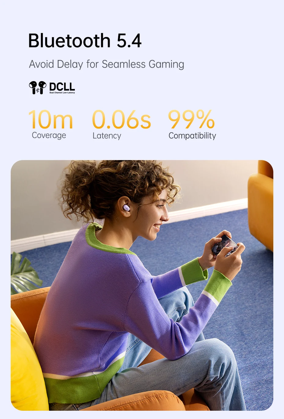 Bluetooth 5.4 Connectivity: Ensures faster pairing, stable transmission, and ultra-low latency for seamless listening.