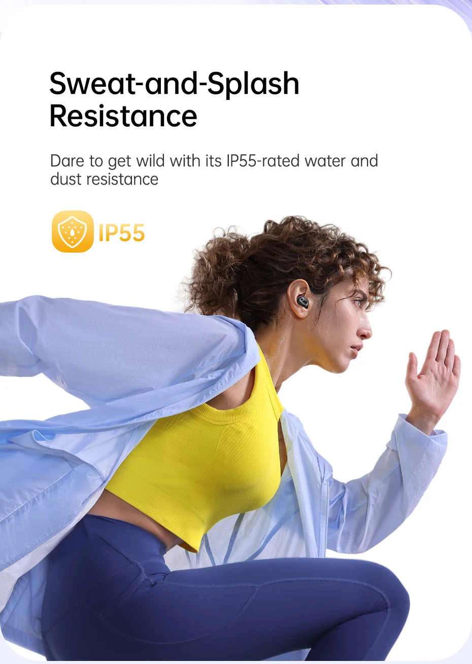 IP55 Dust & Water Resistance: Built to withstand sweat, rain, and dust — ideal for daily use and workouts.