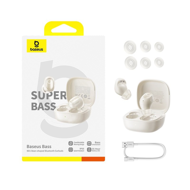 Baseus Bass BD1 TWS True Wireless Earbuds – Starlight Off-White – A00084601233-Z1