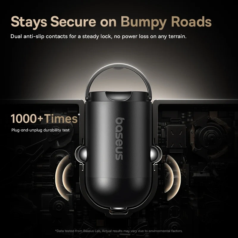 Securely locks into the charging port, ensuring stable power delivery even on bumpy roads. -