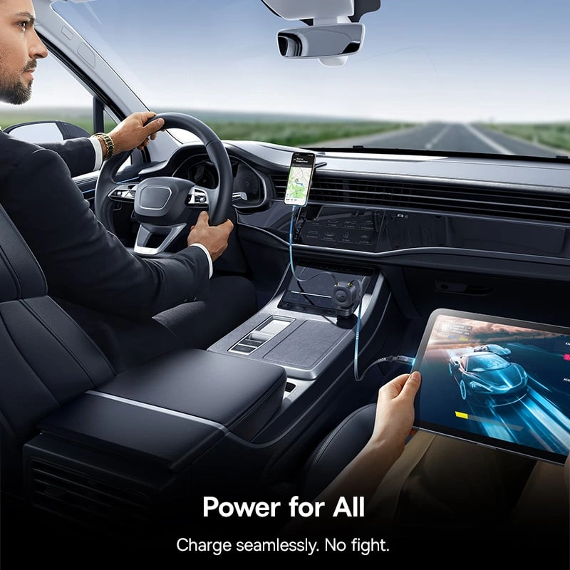 The Baseus PrimeTrip VR2 Max 240W Car Charger is a flagship, high-performance charging solution engineered for modern vehicles and power-hungry devices. Designed with a 4-in-1 3C + USB-A configuration, dual retractable USB-C cables, and up to 240W total output, it effortlessly powers laptops, smartphones, tablets, and accessories simultaneously. Featuring 450° dual-axis rotation, advanced safety controls, and support for all major fast-charging protocols, Baseus PrimeTrip VR2 Max charger delivers unmatched flexibility, safety, and charging efficiency—making it one of the world’s leading retractable car chargers (2021–2024).