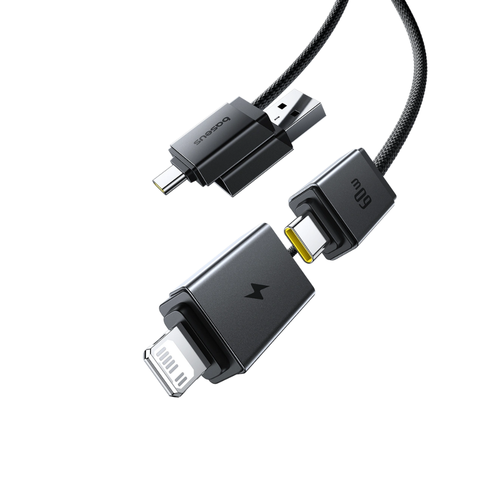 The Baseus Versatile Two-for-Two Fast-Charging Cable in Cosmic Black is designed for users who need maximum flexibility from a single cable. Featuring dual-input and dual-output connectors, it supports up to 60W fast charging for smartphones, tablets, laptops, and Apple devices. Whether you switch between Android and iOS or move between old USB-A chargers and modern Type-C adapters, this cable ensures full compatibility without carrying multiple cables.