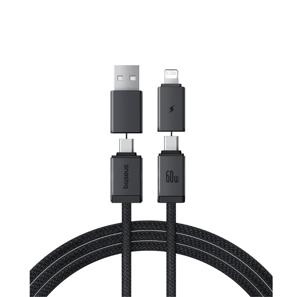 Baseus Versatile 1 Meter 60W Two-for-Two Fast Charging Cable with USB-A + Type-C to Type-C + Lightning Converter – Cosmic Black (P10383000121-01)