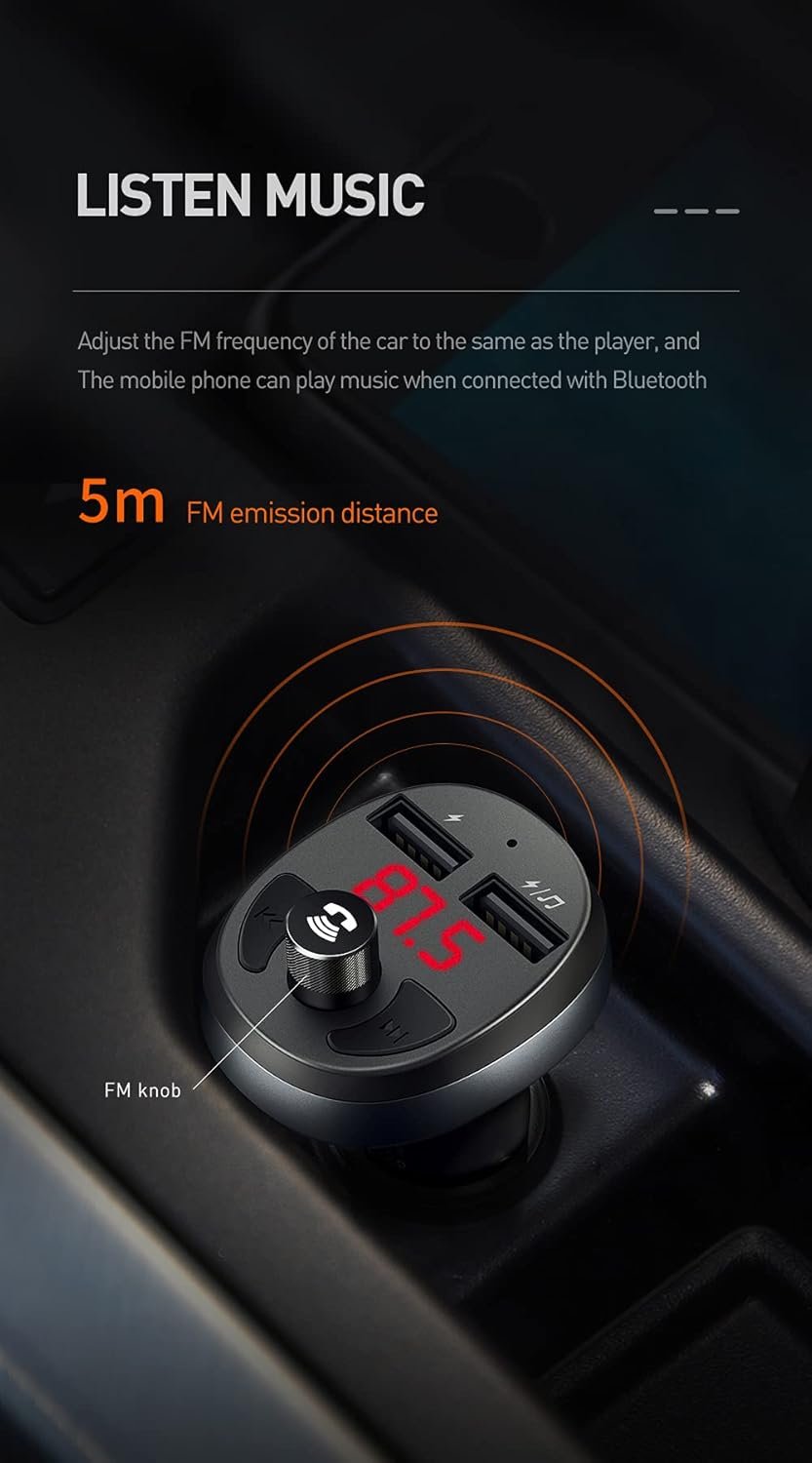LED Display – Shows car charger voltage, FM frequency, and working status at a glance.