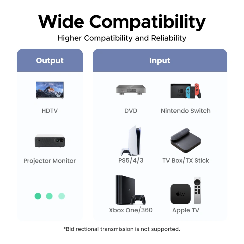 Works seamlessly with TVs, monitors, projectors, laptops, desktops, gaming consoles, Blu-ray players, and other HDMI-enabled devices.