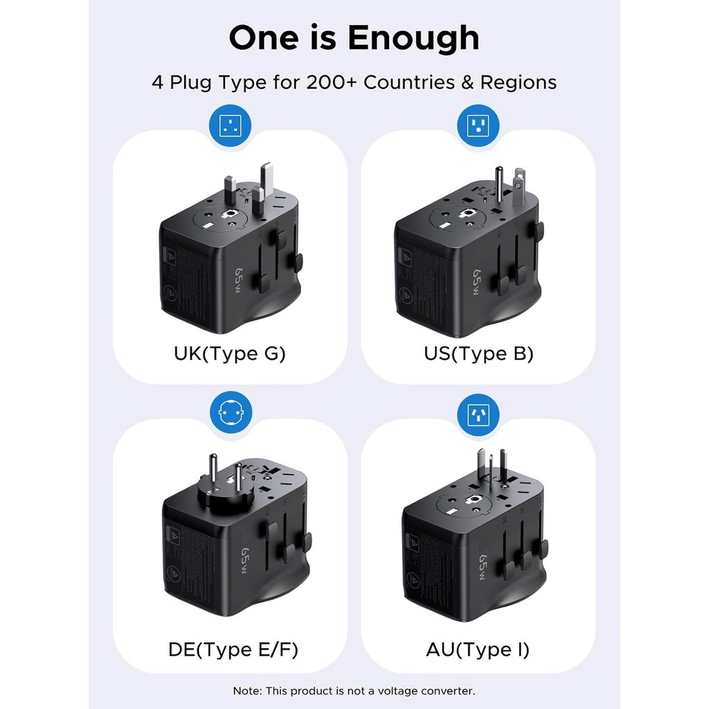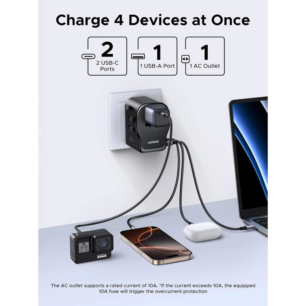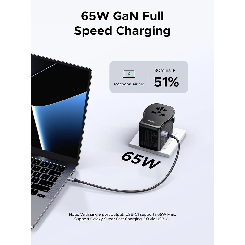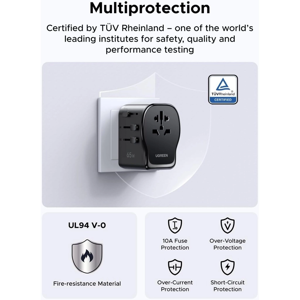 Key Features of UGREEN 65W Universal Travel Adapter: