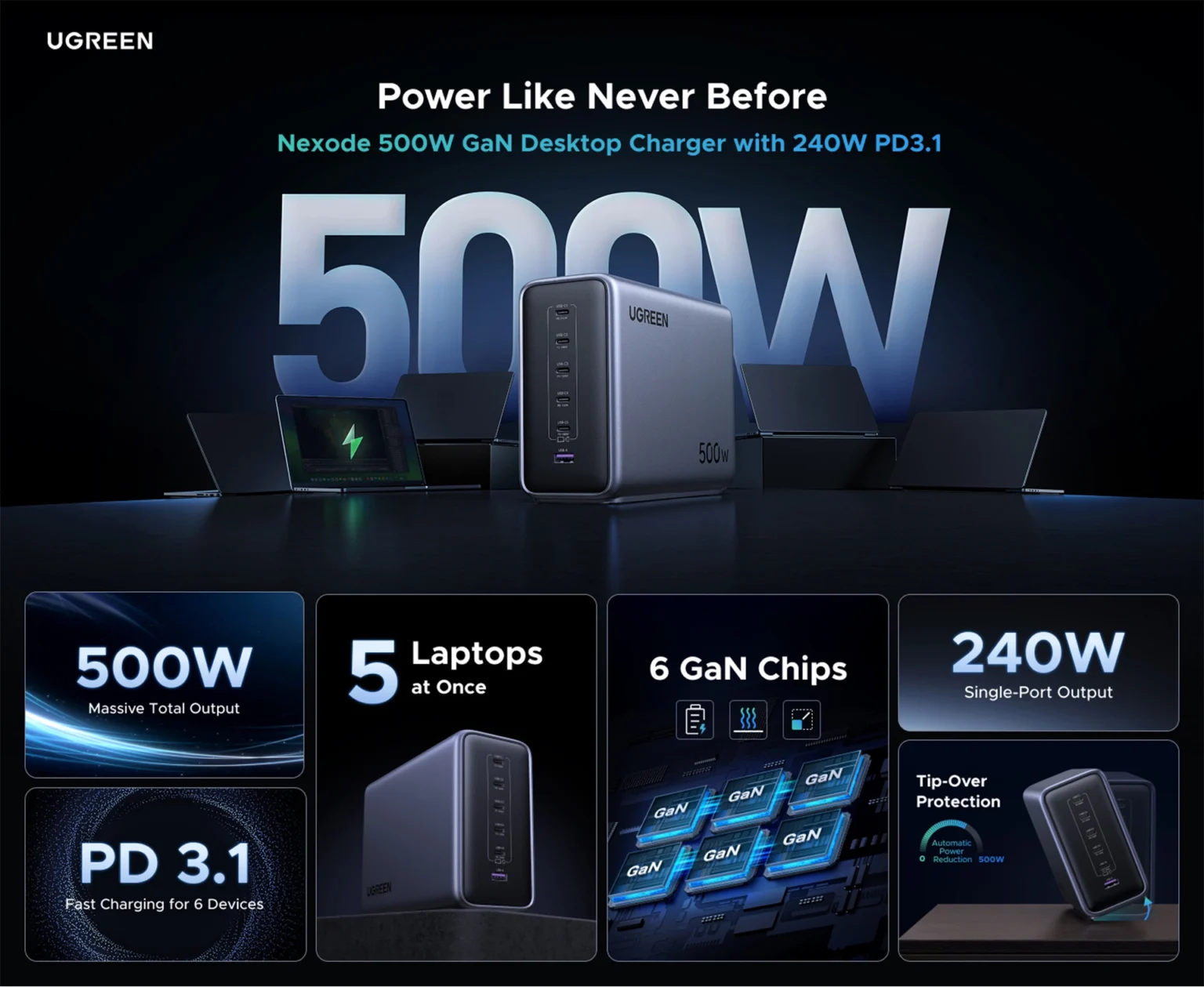 UGREEN Nexode 500W 6-Port GaN Desktop Fast Charger