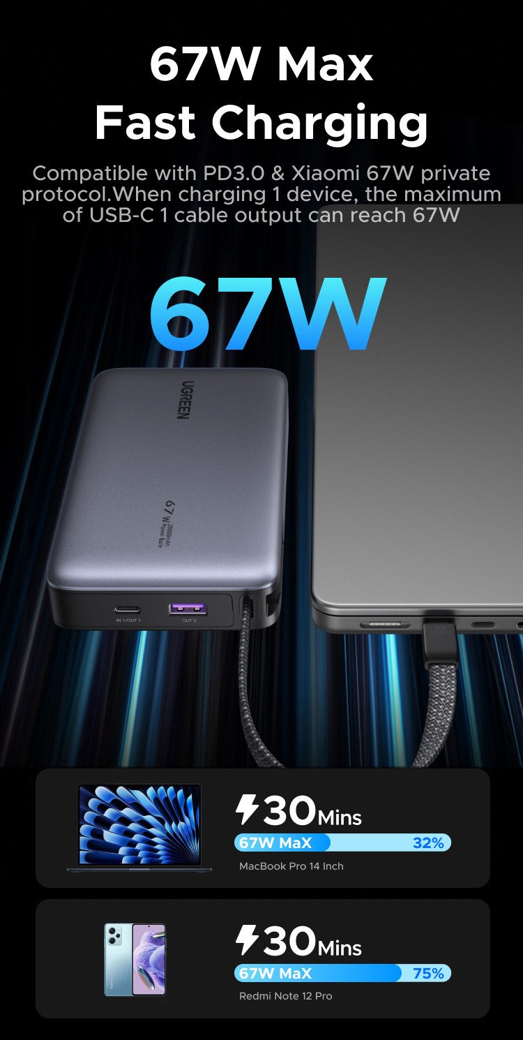 Key Features of UGREEN Nexode 67W 20000mAh Power Bank: