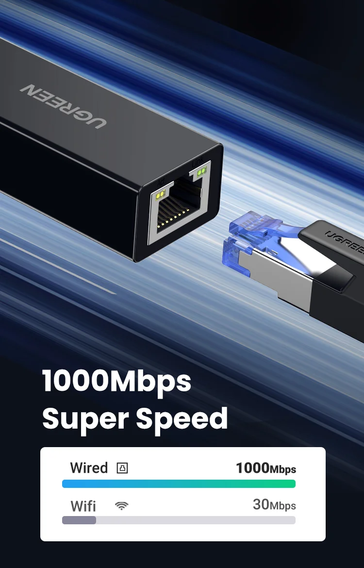 Key Features of UGREEN USB 3.0 to Ethernet Adapter: