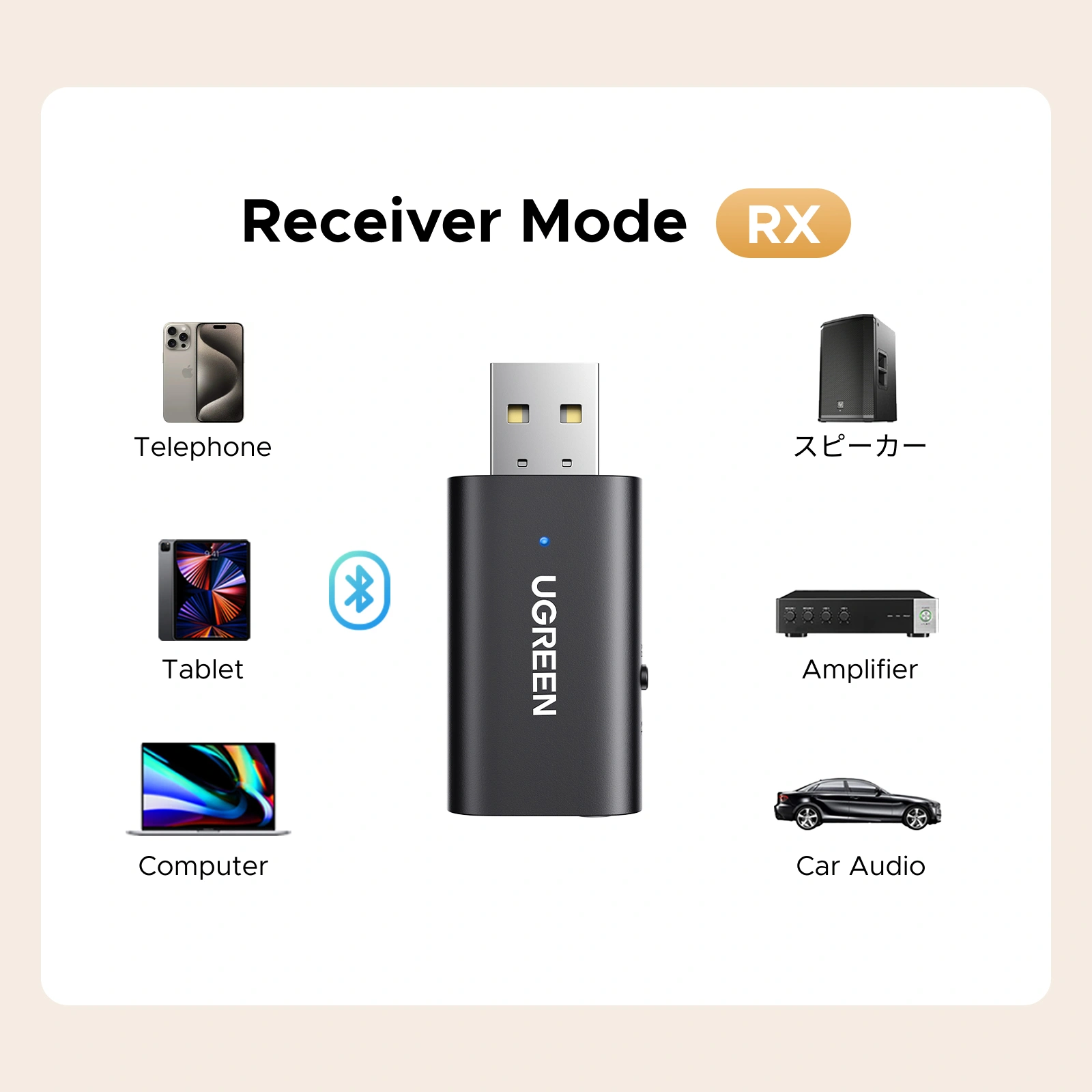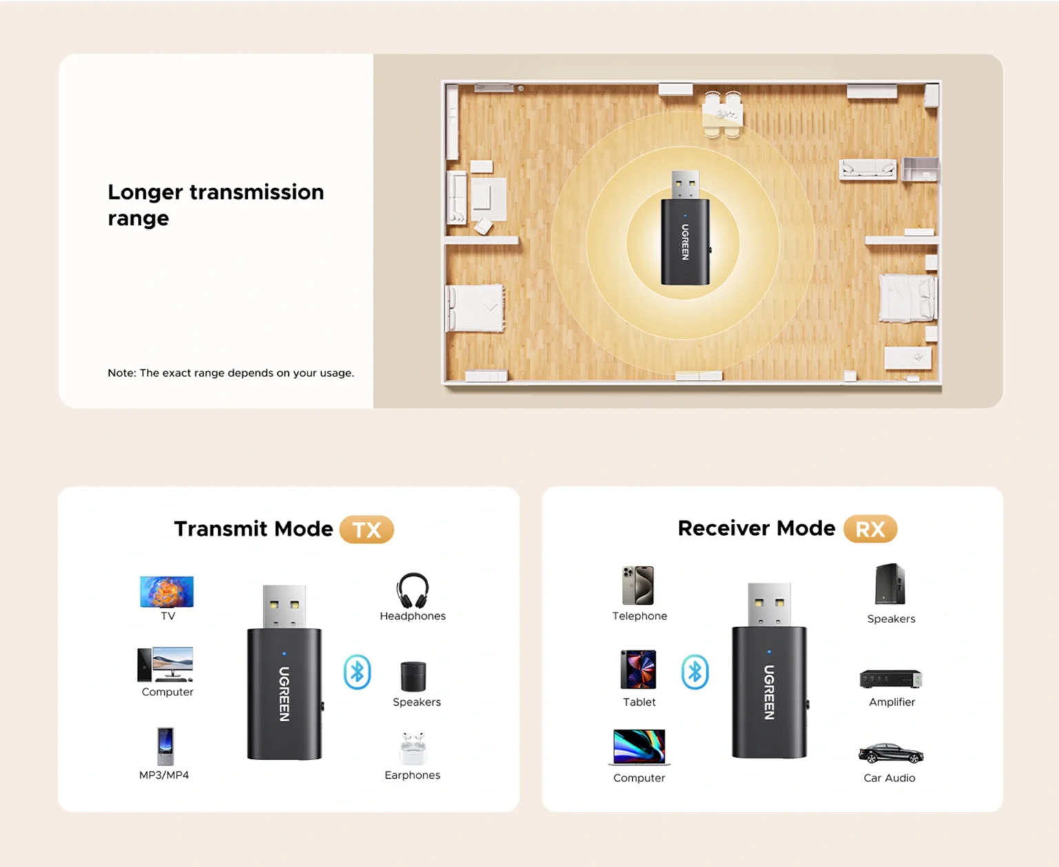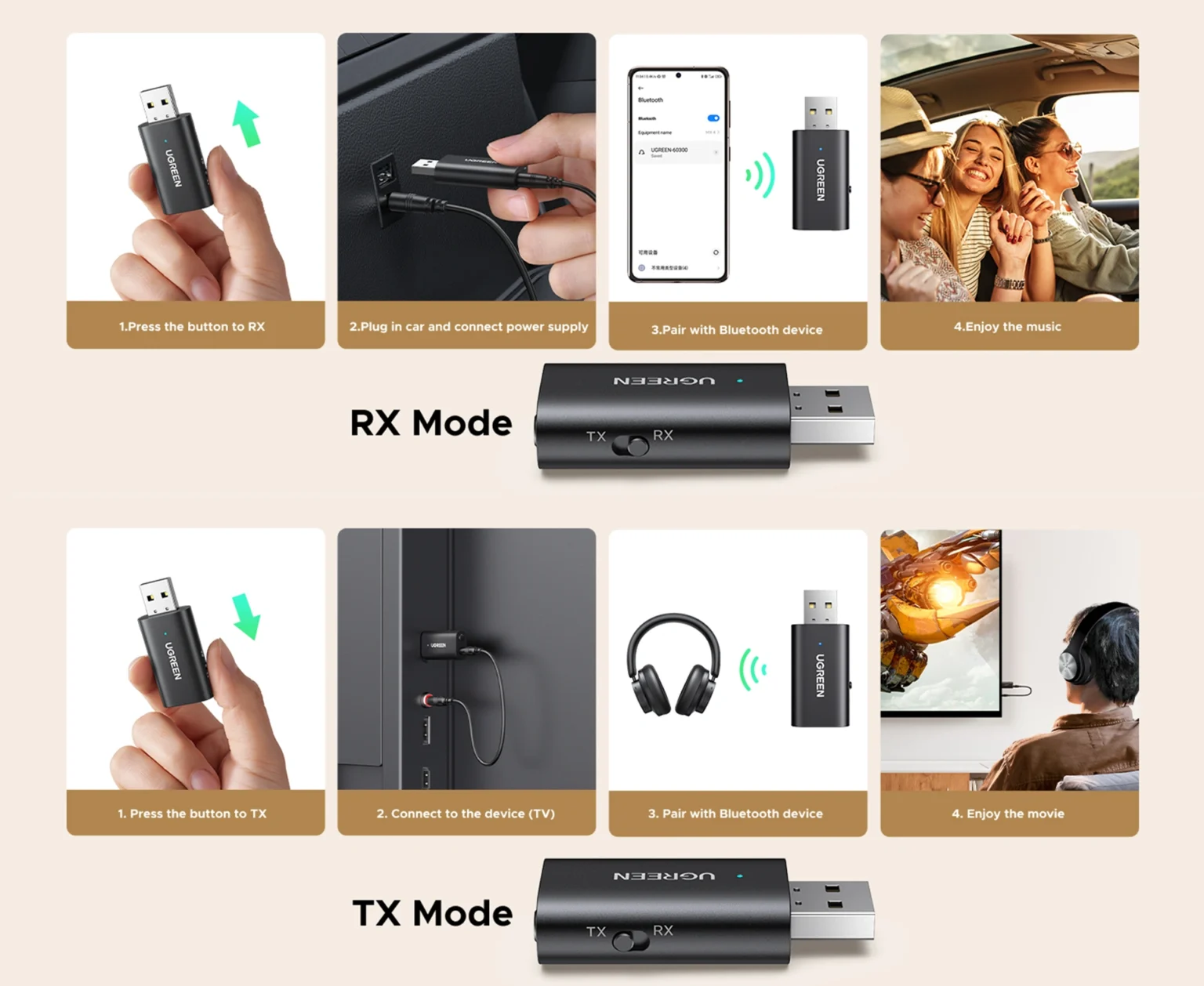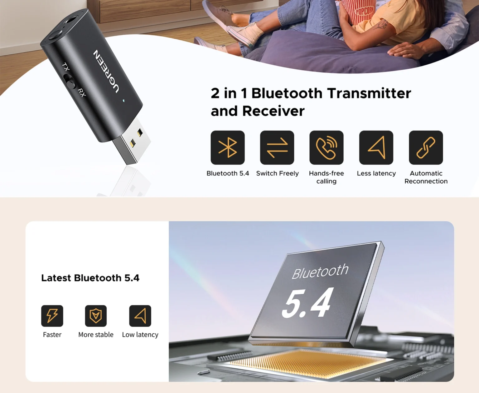 UGREEN USB to 3.5mm Bluetooth Transmitter & Receiver Adapter is the perfect wireless upgrade for your home audio, car, or entertainment setup.
